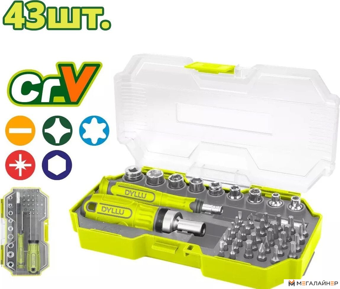 | Комплектация | Овертка -держатель бит (1/4”x115мм) - 1 шт. Овертка -держатель бит (4x113мм) - 1 шт. Биты 1/4"x25мм (SL4, SL5, SL6, PH0, PH1, PH2, PH3, PZ1, PZ2, T10, T15, T20, T25, T27, H3, H4, H5, H6) - 18 шт. Прецизионные биты 4x28мм (SL1.5, SL2, SL2.5, PH000, PH00, T6, T7, T8, Y2, U2.6, Five Star 0.8, Five Star 1.2) - 12 шт. Торцевые головки (4, 5, 6, 7, 8, 9, 10, 11, 12 мм) - 9 шт. Держатель бит 1/4"x50мм - 1 шт. Адаптер для бит 4-6 мм (25 мм) - 1 шт. Кейс |
