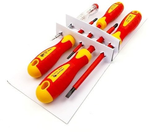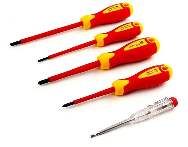 | Информация | Набор четырех отверток 1000V, сертифицированных для работы под напряжением. В комплект входит индикатор напряжения для определения напряжения в кабелях и розетках. |