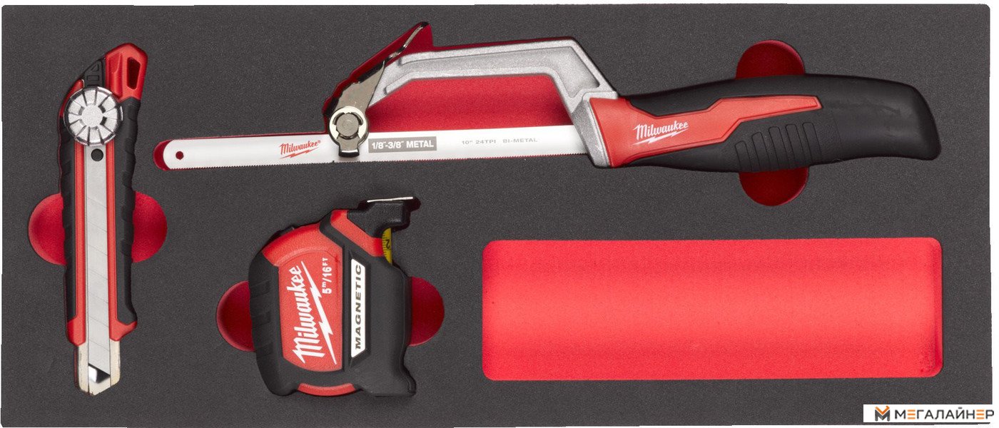 | Информация | - В наборе для резки и измерения Milwaukee 4932493252 (3 предмета) вы найдете магнитную рулетку, нож 18мм и компактную ножовку, все удобно упаковано в ложементе. - Этот набор от Milwaukee 4932493252 включает в себя все необходимое для резки и измерения: магнитную рулетку, нож 18мм и компактную ножовку, удобно хранящиеся в ложементе. - В наборе Milwaukee 4932493252 (3 предмета) вы найдете магнитную рулетку, нож 18мм и компактную ножовку, все удобно упаковано в ложементе. |