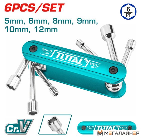 | Комплектация | Количество в наборе 6шт. Размеры 5, 6, 8, 9, 10, 12 мм. Покрытие хромовое. Материал Cr-V. |
