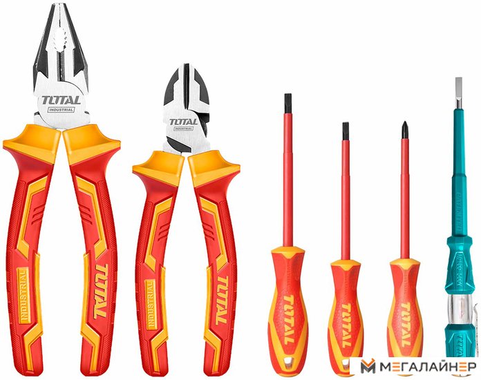 | Комплектация | Изолированные бокорезы: 160 мм (6 ?) - 1 шт. Изолированные комбинированные плоскогубцы: 200 мм (7 ?) - 1 шт. Изолированная отвертка Phillips (PH2 * 100 мм) - 1 шт. Изолированная шлицевая отвертка (SL5,5*125 мм) - 1 шт. Изолированная шлицевая отвертка (SL4 * 100 мм) - 1 шт. Индикаторная отвертка 140 мм - 1 шт. Блистер |