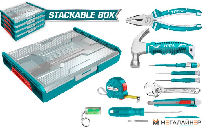 | Комплектация | Мини-молоток - 1 шт. Комбинированные плоскогубцы 7" - 1 шт. Разводной гаечный ключ 6" - 1 шт. Индикаторная отвертка (100-500 В переменного тока) - 1 шт. Рулетка 3 м - 1 шт. Нож - 1 шт. Отвертка SL5.5x100 - 1 шт. Отвертка PH1x100 - 1 шт. Прецизионная отвертка SL2.0*50 мм - 1 шт. Прецизионная отвертка PH000*50 мм - 1 шт. Спиртовой уровень - 1 шт. Штабелируемый кейс |