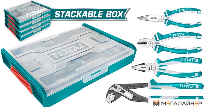 | Комплектация | Комбинированные плоскогубцы 8" - 1 шт. Бокорезы 7" - 1 шт. Длинногубцы 8" - 1 шт. Плоскогубцы 10" - 1 шт. Штабелируемый кейс |