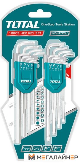 | Комплектация | Набор ключей Torx (T10, T15, T20, T25, T27, T30, T40, T45, T50) - 9 шт. Набор шестигранных ключей Hex (1,5 / 2 / 2,5 / 3 / 4 / 5 / 6 / 8 / 10 мм) - 9 шт. Блистер |
