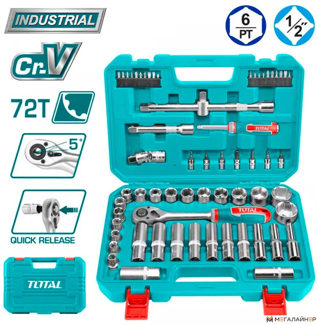 | Комплектация | Вороток с трещоткой 1/2", 72T - 1 шт. Шестигранная головка 1/2" (10 / 11 / 12 / 13 / 14 / 15 / 16 / 17 / 18 / 19 / 20 / 21 / 22 / 24 / 27 / 30 / 32 мм) - 17 шт. Глубокая шестигранная головка 1/2" (10 / 11 / 12 / 13 / 14 / 15 / 16 / 17 / 18 / 19 мм) - 10 шт. Универсальный шарнир 1/2" - 1 шт. Удлинитель 1/2" (125 и 250 мм) - 2 шт. Свечная головка (16 и 21 мм) - 2 шт. Трехходовой адаптер 1/2" - 1 шт. Отвертка-вороток под головки 1/2", 150 мм - 1 шт. Держатель 1/2" для бит - 1 шт. Головок-бит 1/2" (SL4 / SL5.5 / SL6.5 / PH1 / PH2 / PH3) - 6 шт. Биты 1/4" (PH1 / PH2 / PH3 / PZ1 / PZ2 / PZ3 / SL4 / SL5 / SL6 / H1.5 / H2 / H3 / H4 / H5 / H6 / T10 / T15 / T20 / T25 / T30) - 20 шт. |