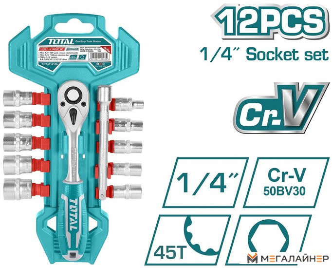 | Комплектация | Вороток с трещеткой 1/4" (45T) - 10 шт. Головки (10мм, 12мм, 14мм, 15мм, 17мм, 19мм10 головок 1/4?: 5 мм, 6 мм, 7 мм, 8 мм, 9 мм, 10 мм, 11 мм, 12 мм, 13 мм, 14 мм) - 10 шт. Удлинитель 1/4" 100 мм - 1 шт. Пластиковый держатель для хранения - 1 шт. |