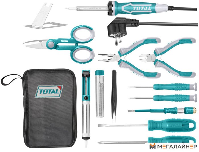 | Комплектация | Плоскогубцы с длинным носом 4,5 " - 1 шт. Бокорезы 4,5" - 1 шт. Шлицевая отвертка SL5,5x100 мм - 1 шт. Крестовая отвертка PH1x100 мм - 1 шт. Прецизионная отвертка PH000x50 мм - 1 шт. Прецизионная отвертка SL2.0x50 мм - 1 шт. Ножницы 5,5" - 1 шт. Электрический паяльник 40 Вт - 1 шт. Подскавка для электрического паяльника - 1 шт. Припой 6" - 1 шт. Вакуумный экстрактор (оловоотсос) - 1 шт. Пинцет 125 мм - 1 шт. Индикаторная отвертка 140 мм - 1 шт. Сумка для хранения - 1 шт. |