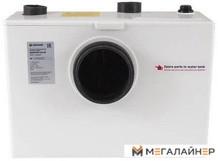 | Информация | Компактная насосная установка с режущим механизмом (КНС) - это автоматическая система, предназначенная для эффективной передачи сточных вод, включая те, которые содержат фекалии, из унитазов, раковин, душевых, ванн, биде и писсуаров, к главной канализационной системе. Эта установка предназначена для использования в случаях, когда стандартное самотекущее канализационное устройство нецелесообразно, как, например, в подвалах или на первых этажах зданий, где уровень отводимых стоков находится ниже уровня основной канализации. Также КНС может быть полезна при реконструкции или расширении жилых помещений, когда добавляются дополнительные сантехнические приборы. Следует отметить, что эта система не предназначена для использования в общественных местах или в коммерческих и промышленных целях. Она разработана для обслуживания ограниченного числа пользователей, обычно в бытовых условиях. Вход от туалета (DN 100), 2 входа (DN 40) от раковин и т. д., напорный патрубок (DN 40) |