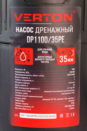| Информация | - Дренажный насос Verton Aqua DP1100/35PE предназначен для перекачки загрязненной воды с содержанием твердых частиц до 35 мм. - Идеально подходит для осушения затопленных помещений, бассейнов, подвалов и для орошения сада. - Подходит как для частных домов, так и для коммунальных служб и промышленных предприятий. - Поплавковый выключатель автоматически включает и выключает насос при изменении уровня воды. - Защита от сухого хода и камера для охлаждения электродвигателя обеспечивают безопасную работу насоса. - Может поднимать воду на высоту до 9 метров. - Уникальная конструкция водоприемника обеспечивает устойчивость на любой поверхности. - Корпус из высокопрочного пластика и керамический сальник обеспечивают надежность и долговечность насоса. - Переносная ручка облегчает транспортировку. - Бесщеточный двигатель обеспечивает эффективную работу насоса. - |