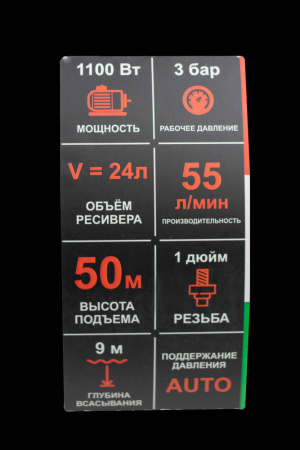 | Информация | - Насосная станция Verton Aqua PS1100C/24 с ресивером на 24 литра оснащена асинхронным двигателем мощностью до 1100 Вт. и способна поднимать жидкость с глубины до 9 метров. Максимальное давление - 3 бар, перекачивает до 55 литров в минуту. - Высокая производительность обеспечивает быстрое заполнение бака. Способна перекачивать воду с твердыми частицами до 0,1 мм. Можно регулировать давление по требованиям. - Возможность подключения автоматических стиральных и посудомоечных машин. Системный комплект оптимально подобран по всем параметрам. - Всегда есть запас воды на случай большого расхода или отключения электроэнергии. |