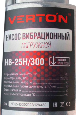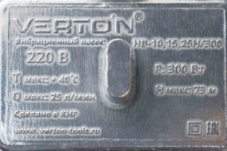 | Информация | - Вибрационный насос Verton НВ-25Н/300 - простой в использовании прибор для подъёма и перекачки воды из водоемов, колодцев и резервуаров диаметром более 90/120 мм. - Имеет электрический двигатель мощностью 300 Вт, который обеспечивает напор до 73 метров и производительность до 25 л/мин. - Электрошнур длиной 25 метров. - Корпус из высокопрочного алюминиевого сплава защищает внутренние элементы насоса от повреждений и перегрева. - Максимальная глубина погружения до 4 метров. - Требования к качеству воды: чистая вода без примесей и песка. - ОСОБЕННОСТИ: • Подъем воды из колодцев с глубиной до 10 метров от уровня зеркала воды и диаметром не менее 90/120 мм; • Максимальная производительность 25 л/мин; • Высота подъема 73 м; • Нижний забор воды; • Винты на корпусе отвечают герметичности соединения; • Соединительный патрубок - 3/4»; • Электрический кабель длиной 25 м; • Насос прост в использовании, не требует обслуживания. |