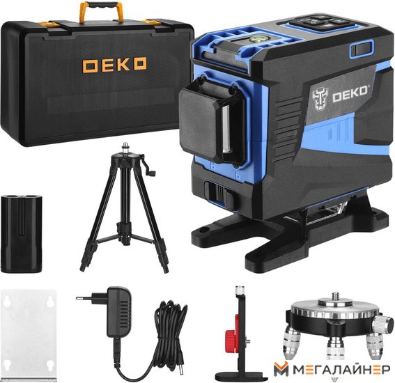 - Уровень лазерный самовыравнивающийся - 1 шт.; - Штатив - 1 шт.; - Металлическая пластина - 1 шт.; - Тренога - 1 шт.; - Магнитный кронштейн - 1 шт.; - Руководство по эксплуатации; - Кейс