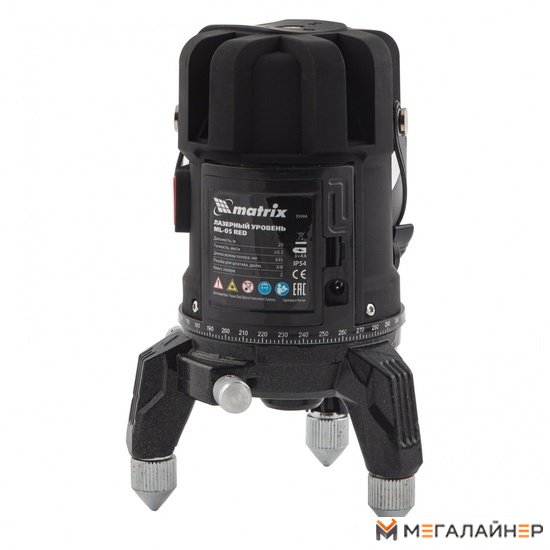| Информация | Лазерный уровень с резьбой 5/8"" под штатив проецирует горизонтальную и вертикальные линии, а также точку отвеса на расстоянии до 20 м при помощи красных лучей длиной 635 нм. Устройство работает от 3 батареек типа AA. С его помощью можно легко разметить все стены в помещении, чтобы ровно уложить кирпич и плитку, установить окна и двери, смонтировать подвесной потолок. Преимущества: Простое управление — лучи включаются и выключаются при помощи сенсорных кнопок. Точная разметка — устройство работает в режиме автоматического выравнивания лучей (точность ±3 мм/м), а также имеет функцию ручной регулировки при помощи пузырькового уровня, винта точной настройки и регулируемых ножек. Яркие лучи — качественные диоды обеспечивают отличную видимость проекций даже при дневном освещении. Сигнализация о превышении критического угла наклона — если отклонение уровня от вертикали составляет более 4 градусов, то начинают мигать лучи и звучит сигнал. Поворотное основание — можно плавно и точно наводить вертикальные лучи на нужный участок поверхности. Экономный расход электроэнергии — неиспользуемые лучи можно отключить. Надежность — уровень имеет степень защиты IP54, поэтому внутрь корпуса не попадают брызги воды и пыли. Удобная и безопасная транспортировка — уровень весит 1,6 кг и комплектуется прочной сумкой, а функция блокировки обеспечивает защиту маятника от повреждений. |