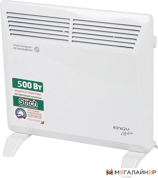 | Информация | -Электрический конвектор Engy EN-500 Modern - это современное решение для обогрева помещений площадью до 10 м?. Он выполнен в лаконичном белом цвете, благодаря чему гармонично впишется в любой интерьер. Компактные размеры и возможность настенного или напольного монтажа делают его универсальным вариантом для дома, офиса или дачи. -Данная модель оснащена игольчатым (стич) нагревательным элементом, который обеспечивает быстрый и равномерный прогрев воздуха. Механическое управление позволяет легко регулировать температуру и мощность для создания комфортного микроклимата в помещении. -Для безопасности эксплуатации в конвекторе предусмотрена функция автоотключения при перегреве, а наличие термостата позволяет поддерживать заданную температуру без лишних усилий со стороны пользователя. При этом корпус устройства не является влагозащитным, поэтому использовать его рекомендуется только в сухих помещениях. -Компактные размеры (ширина 46 см, глубина 22.3 см, высота 44.2 см) и небольшой вес (3.3 кг) обеспечивают удобство транспортировки и установки. Конвектор поставляется с годовой гарантией, а также есть опциональная возможность продления гарантийного обслуживания. |