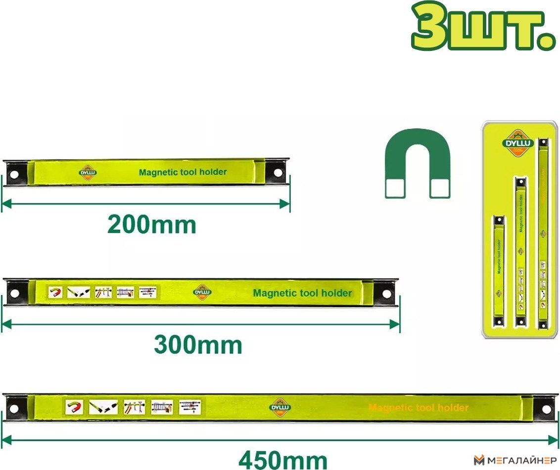 | Информация | ??Текст описания составлен при помощи искусственного интеллекта. - Набор магнитных держателей DYLLU DTHH2603 — это идеальное решение для организации вашего рабочего пространства. В комплект входят три держателя различной длины: 200 мм, 300 мм и 455 мм, что позволяет удобно разместить инструменты любого размера. - Эти магнитные держатели предназначены для хранения гаечных ключей, отверток, плоскогубцев и других инструментов, что поможет вам поддерживать порядок и быстро находить нужные вещи. Сила сцепления каждого держателя впечатляет: 4,5 кг, 6,8 кг и 9 кг, что гарантирует надежное крепление. - Упаковка в виде скользящей карты делает набор удобным для хранения и транспортировки. Вы сможете легко разместить его в любом месте, будь то гараж, мастерская или дом. - Обратите внимание, что производитель оставляет за собой право изменять характеристики и внешний вид товара без предварительного уведомления. - Выбирая набор магнитных держателей DYLLU, вы получаете качественный и практичный инструмент для упрощения работы и повышения эффективности. |
