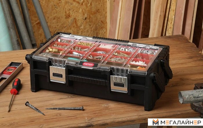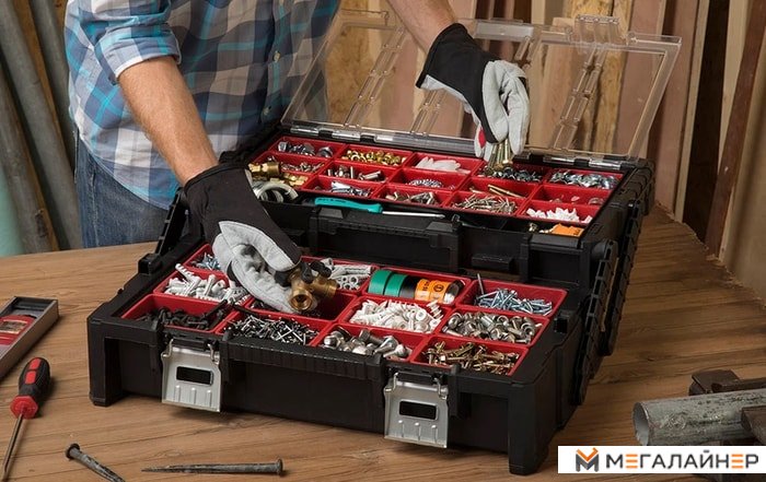 | Информация | Ящик из прочного полипропилена с двумя раздвижными органайзерами и съемными модулями для хранения инструмента, мелких деталей, фурнитуры и метизов.Нижний органайзер:в комплекте 8 съемных модулей 115х70 мм; 2 съемных модуля 225х65 ммВерхний органайзер:в комплекте 10 съемных модулей 85х50 мм; 2 съемных модуля 85х105 мм; дополнительное несъемное отделение 285х115 ммпрозрачная крышка для удобной визуализации содержимого отделений |