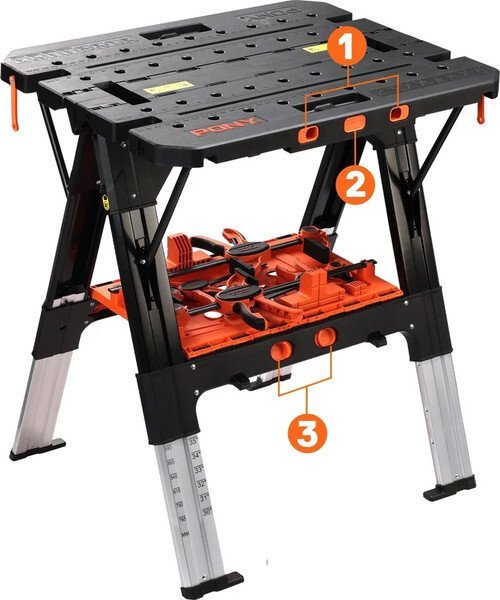 | Информация | Верстак 2-в-1: Столешница выполнена из противоударного высококачественного пластика. Ножки комбинированные (сталь и алюминий) Вес верстака 17кг. можно использовать как верстак и как козлы размеры в сложенном виде 81х68х16 см. размеры столешницы верстака в разложенном положении 64х79см. высота ножек регулируется от 765 до 890мм. максимальная нагрузка: в разложенном состоянии (верстак) 225кг. в сложенном состоянии (козлы) 455кг. в новой модели верстака, в отличии от старой, можно использовать струбцины других производителей Струбцина быстрозажимная 300мм: благодаря запатентованной конструкции позволяет соединить любые струбцины вместе без использования инструмента усилие зажима 135кг. глубина зажима 85мм размер губок 75х35мм Набор из 4-х упоров малый упор – 2шт большой упор – 2шт Читать дальше |