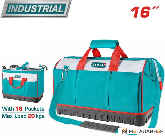 | Информация | Сумка для инструментов Total THT16163 - специально разработана для интенсивного использования (industrial). Изготовлена из ткани оксфорд, полиэтилена (PE) и резины для долговечности. Жесткая рама обеспечивает легкое открывание и доступ к инструментам. Усиленная пластиковая основа обеспечивает долговечность. Внутренние карманы увеличивают вместимость сумки. Дополнительная шлейка позволяет носить сумку на плече. Максимальная нагрузка - 20 кг. 16 секций для удобной организации инструментов. Стильный корпоративный дизайн. |