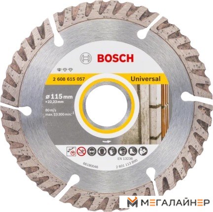 | Информация | Алмазный отрезной диск Standard for Universal позволяет осуществлять надежную резку универсальных строительных материалов Оптимизированная алмазная матрица обеспечивает надежный результат, благодаря высоким стандартам качества диска Высокие стандарты качества, гарантируемые специализированным центром алмазной обработки Bosch в Швейцарии С посадочным отверстием 22,23 мм для угловых шлифовальных машин со стандартной стопорной гайкой. |