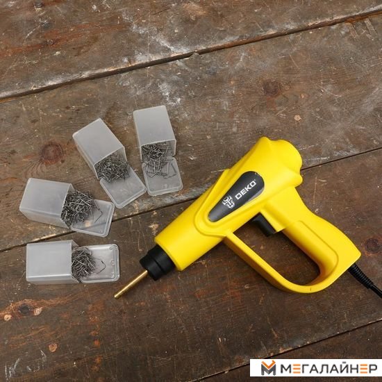 Паяльник - 1 шт.; Кусачки - 1 шт.; Канцелярский нож - 1 шт.; Плоские скобы - 50 шт.; Внешние угловые скобы - 50 шт.; Внутренние угловые скобы - 50 шт.; Изогнутые скобы - 50 шт.; Руководство по эксплуатации - 1 шт.