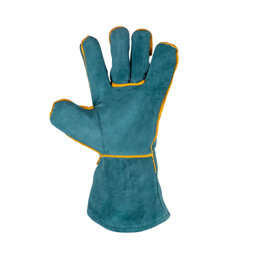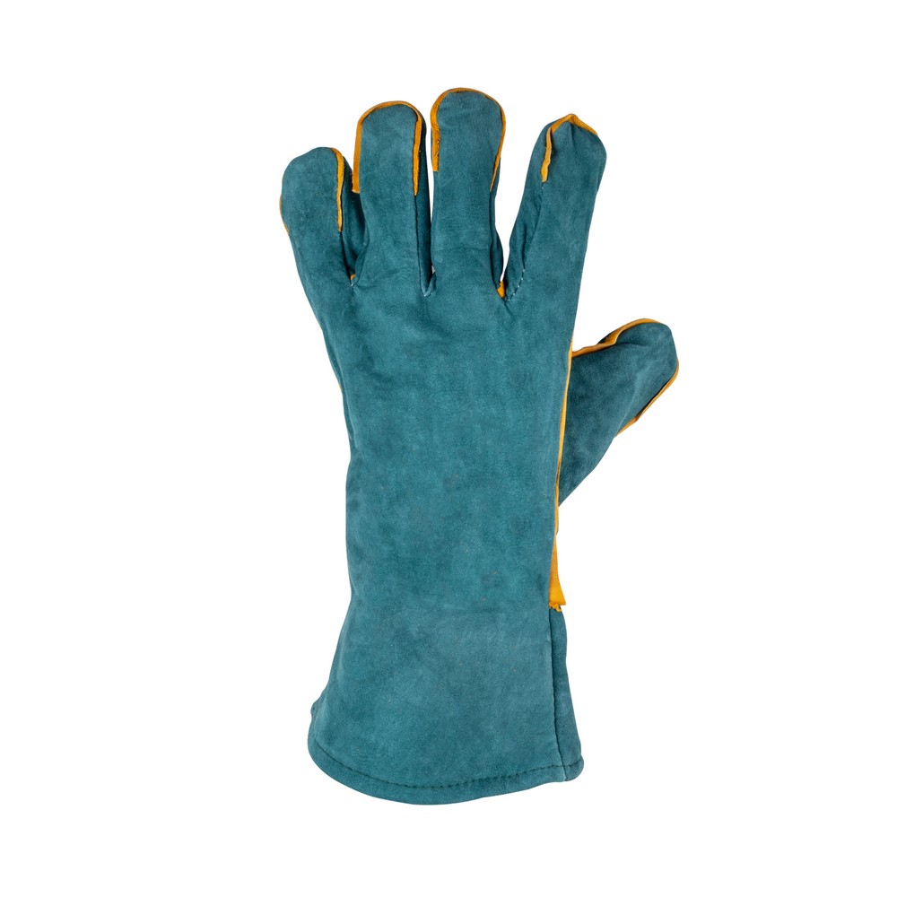 Краги спилковые Foxweld Зелёные предназначены для защиты кистей и предплечья рук от механических и термических повреждений покровов кожи при ММА сварке покрытым электродом или при работе полуавтоматом (MIG/MAG).