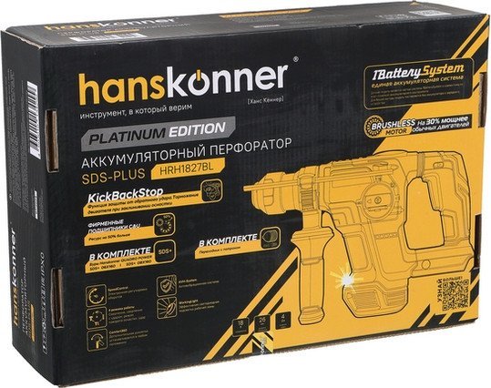 | Информация | - HRH1827BL Hanskonner серии PLATINUM – 18 В аккумуляторный перфоратор с патроном под оснастку SDS+ часть системы 1BatterySystem и совместим со всей линейкой инструмента данной системы. Подходит для сверления отверстий в бетоне, дереве и стали. Имеет 3 режима: сверление, сверление с ударом, долбление + режим предустановки долота. - Инструмент оснащен бесщеточным электромотором Brushless Motor, характеризующимся на 30% большей производительностью в сравнении с обычными коллекторными моторами и лучшей долговечностью – отлично противостоит кратковременным перегрузкам, и не склонен к перегреву. Для комфорта работы в условиях с недостаточным освещением модель оборудована эффективной LED подсветкой рабочей зоны. Инструмент не требует расположенной рядом электросети, поэтому работать можно на обесточенных объектах и на высоте. - В данной модели перфоратора используется активная антивибрационная система AVH-System, благодаря чему значительно снижается нагрузка на руки оператора, что позволяет увеличить временной интервал работ. Еще одной особенностью данной модели является - предустановленная система KickBackStopl, выполняющая функцию защиты от обратного удара за счет торможения двигателя при заклинивании оснастки, обеспечивающая безопасность при выполнении различного рода работ. - Энергия удара 4Дж позволяет не только бурить, но и осуществлять долбежные работы. - HRH1827BL Hanskonner поставляется в коробке с мягким ложементом без аккумулятора и зарядного устройства. - Приятным бонусом станут: профессиональные буры Hanskonner QUADRO POWER SDS+ 06X160, SDS+ 08X160 и патрон для сверления с адаптером, которые также включены в комплект поставки. |