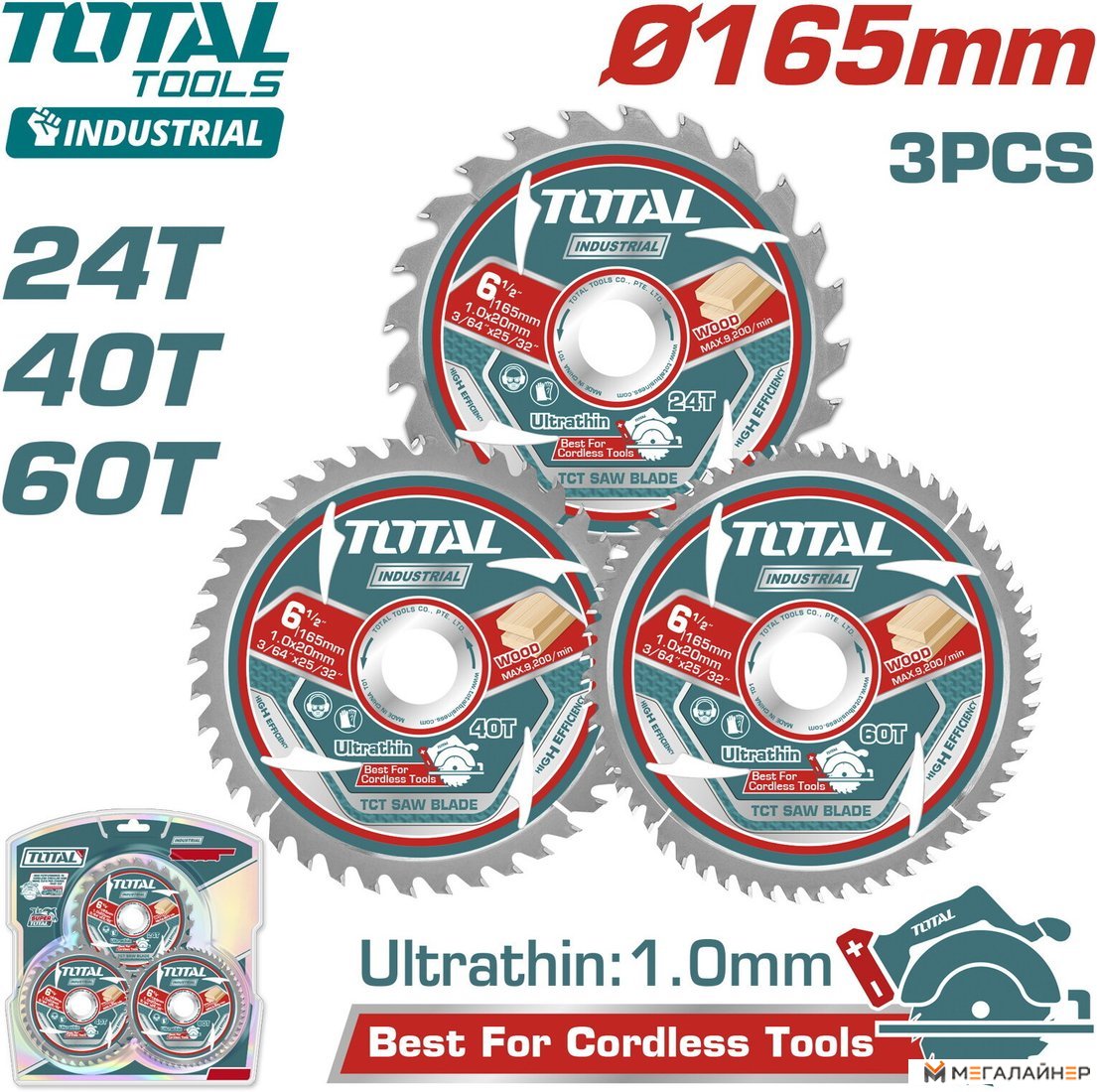 | Информация | - Диск пильный по дереву ?165x20мм 24T - 1 шт. - Диск пильный по дереву ?165x20мм 40T - 1 шт. - Диск пильный по дереву ?165x20мм 60T - 1 шт. - Редукционное кольцо 16 мм - 1 шт. - Блистер |