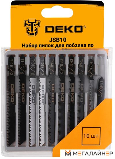 | Информация | Набор пилок для лобзика по дереву DEKO JSB10, 10 шт - совместим с любыми электролобзиками. Пилки для электролобзика производятся из прочной HCS стали. Универсальный набор пилок для электролобзика предназначен для быстрого и чистого пиления древесины разных пород, работ по ламинату, фанере, пластику, ДВП, ДСП, МДФ, столярных плитах, а также для фигурного выпиливания с различной скоростью и точностью. Комплектация: T101B: рабочая длина – 75 мм., шаг зубьев – 2,5 мм. – 2 шт. T111C: рабочая длина – 75 мм., шаг зубьев – 3 мм. – 2 шт. T119BO: рабочая длина – 50 мм., шаг зубьев – 2 мм. – 1 шт. T144D: рабочая длина – 75 мм., шаг зубьев – 4 мм. – 2 шт. T101AO: рабочая длина – 58 мм., шаг зубьев – 1,4 мм. – 1 шт. T244D: рабочая длина – 75 мм., шаг зубьев – 4 мм. – 2 шт. Пластиковый бокс |