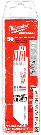 | Комплектация | Сабельное полотно Milwaukee THIN KERF SM 150 x 14 Tpi |