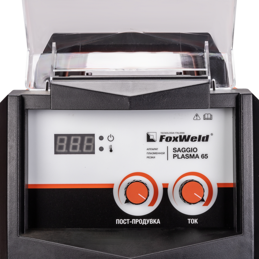 Прозрачная пластиковая крышка защищает панель управления аппарата от искр, шлака и других воздействий рабочего процесса.
