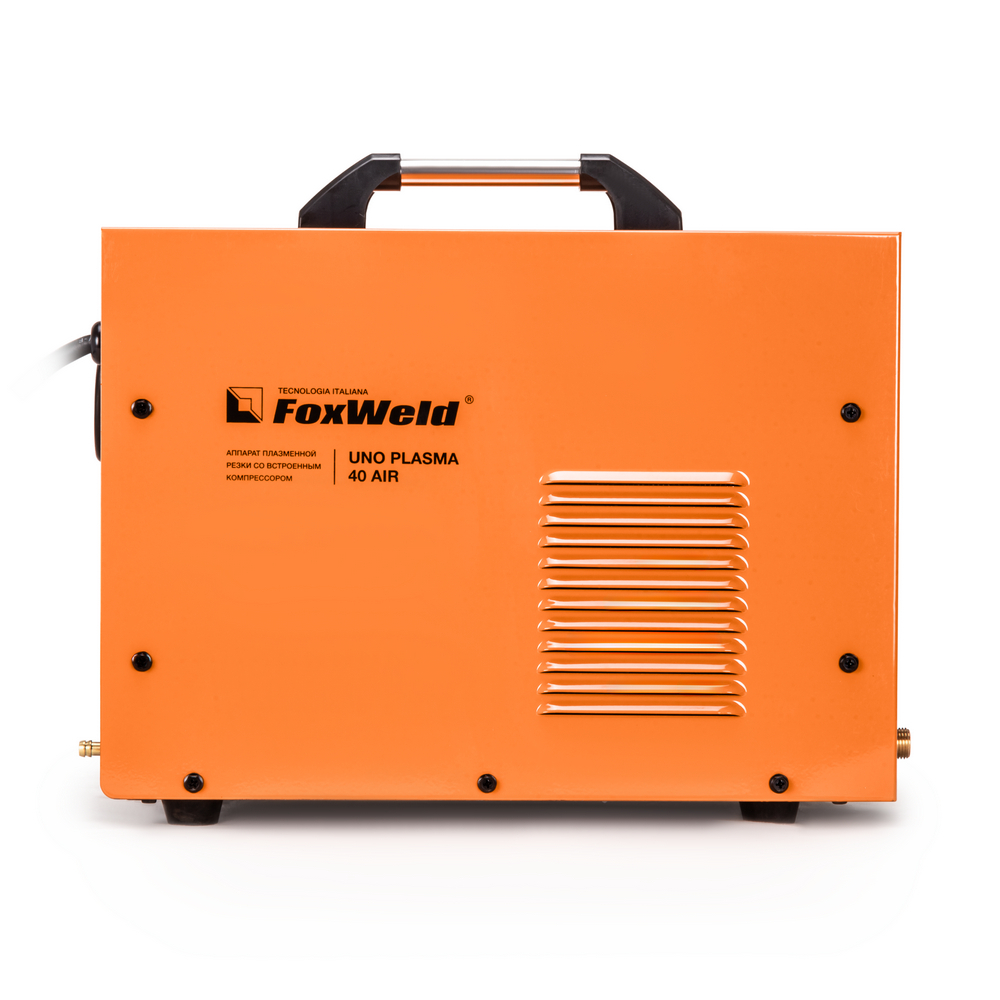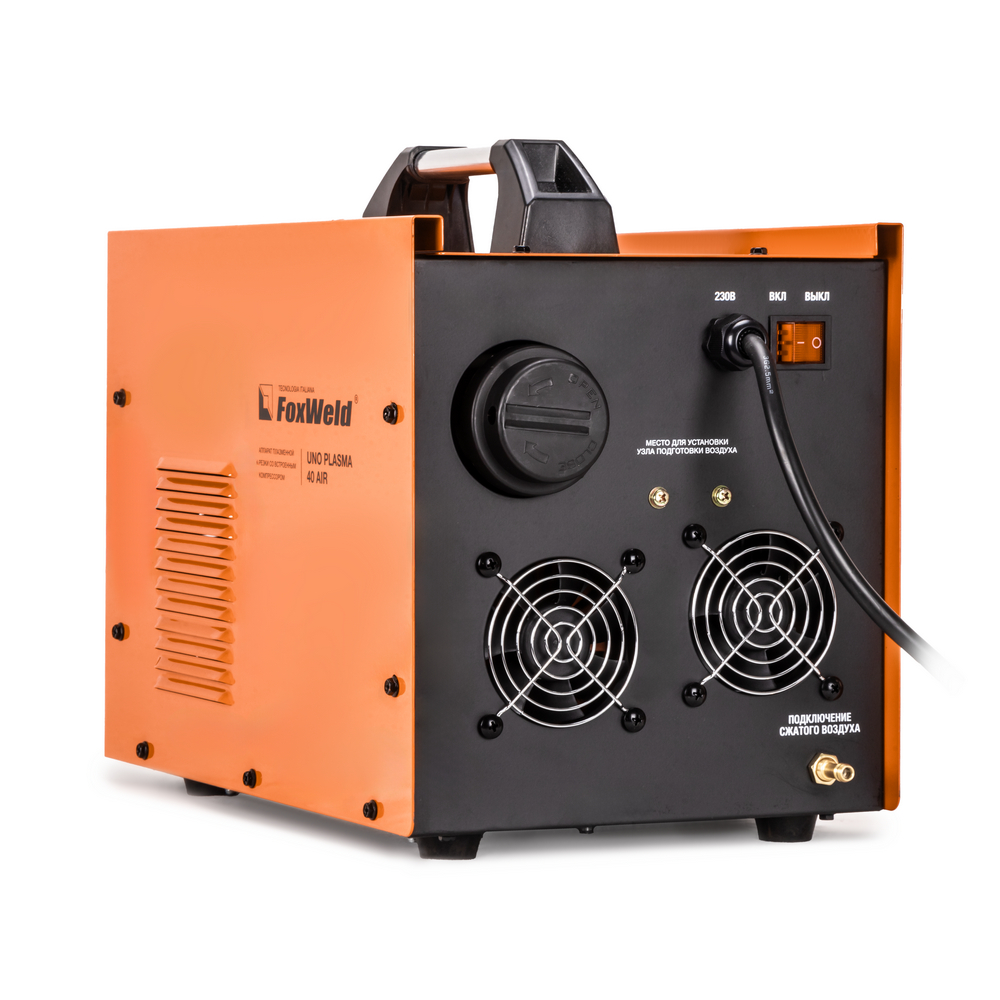 Аппарат плазменной резки со встроенным компрессором UNO Plasma 40 Air – многофункциональный современный источник питания, который широко применяется при резке углеродистой и нержавеющей стали, алюминиевых сплавов и других металлов. UNO Plasma 40 Air позволяет разрезать сталь толщиной до 15 мм. Высокие динамические характеристики дуги, регулировка и точность установки тока, инверторная технология обеспечивают качество реза и экономию энергии. В аппарате также предусмотрен дополнительный режим сварки штучными электродами ММА. Встроенный фильтр-регулятор позволяет регулировать давление сжатого воздуха и осушать/очищать подаваемый компрессором воздух в зону плазменной дуги в процессе работы. 2 цифровых дисплея на передней панели управления отображают установленные значения тока резки/сварки и напряжения сети.