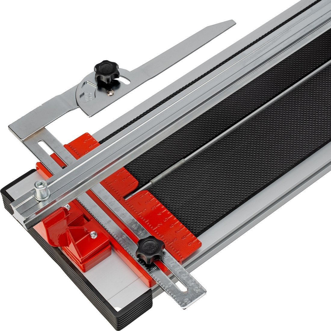 | Информация | Рельсовый плиткорез MTX 87689 способен резать плитку длиной до 700 мм и толщиной до 16 мм для придания ей необходимых размеров. Мощный разделитель справляется с резкой не только керамической, но и керамогранитной плитки. Продуманная конструкция позволяет производить разлом в любой точке поверхности плитки. Инструмент используется во время проведения облицовочных работ. Преимущества Эффективная работа в течение длительного времени — режущий ролик выполнен из твердого сплава ВК-8. Плавный и легкий ход — в конструкции использован качественный направляющий рельс из стального сплава с антикоррозийным покрытием и надежный шарикоподшипниковый механизм. Резка под углом до 45° — производителем предусмотрен поворотный угольник-угломер, обеспечивающий также дополнительную фиксацию плитки. Максимальная устойчивость рукоятки при резке — прижимной обхват рельса каретки регулируется специальным болтами, что обеспечивает полное отсутствие люфта между кареткой и рельсом. Надежный захват — обрезиненная рукоятка удобно ложится в руку и не выскальзывает из ладони. Удобная транспортировка — станина из алюминиевого сплава не утяжеляет конструкцию. |