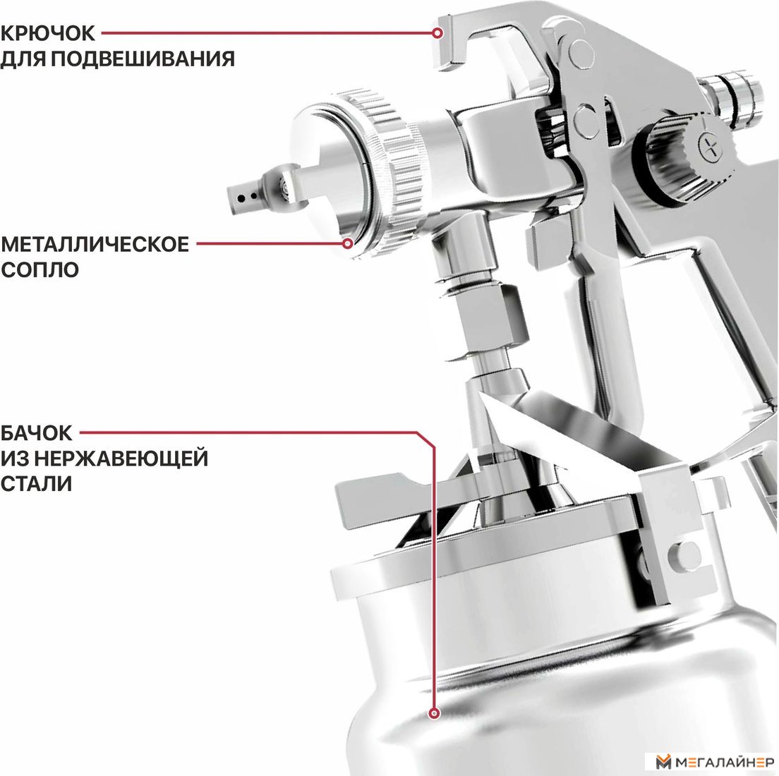 | Комплектация | - Краскопульт, - бачок, - коробка, - ключ, - щетка, - руководство по эксплуатации. |