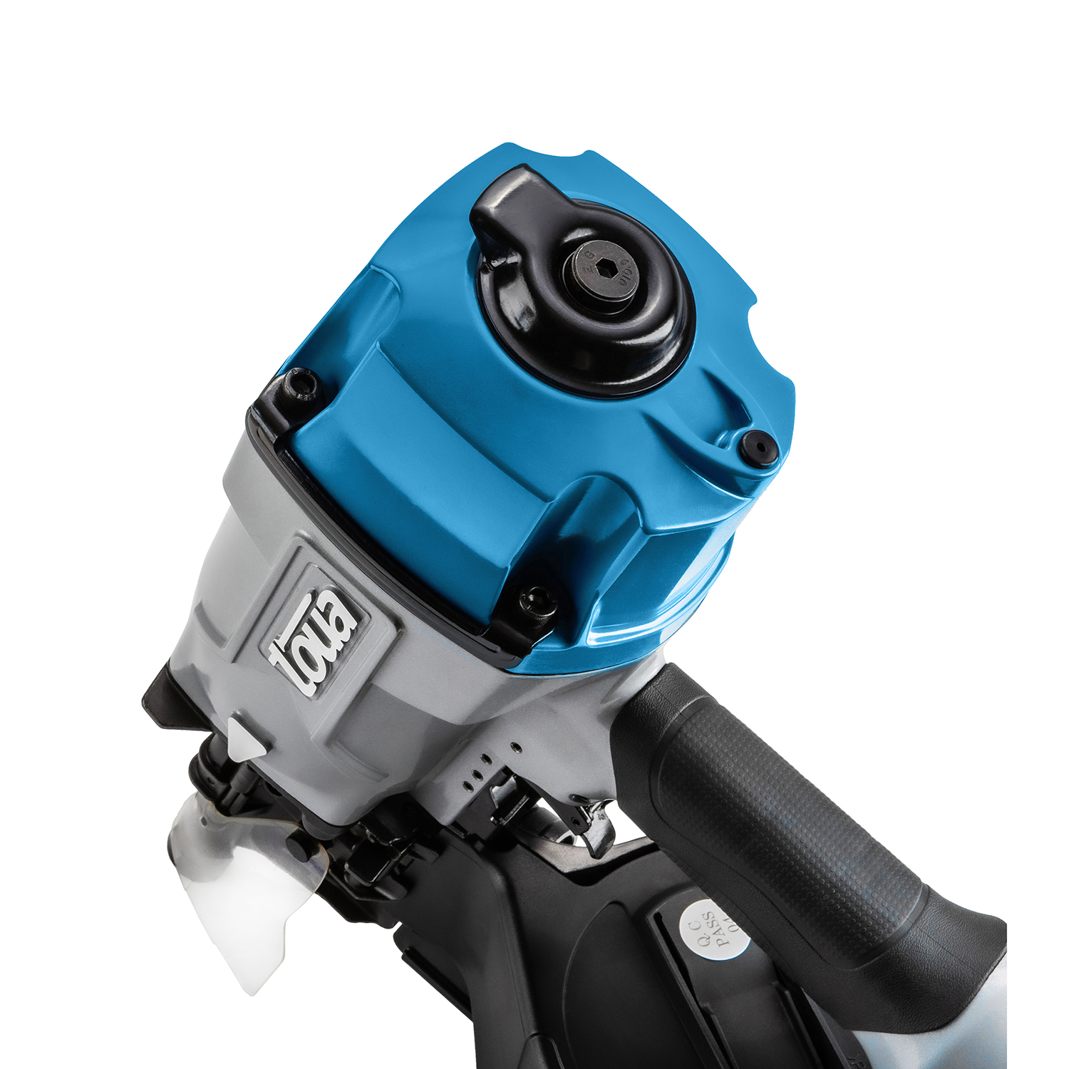 Toua CN80 гвоздезабивной пневматический пистолет барабанного типа работает с гладкими, ершеными и винтовыми гвоздями соединенными между собой проволокой. Обладает высокой производительностью, большим ресурсом и низкой стоимостью точки крепления. Подходит для работ на производстве и конвейерной сборки.