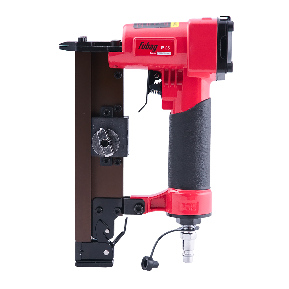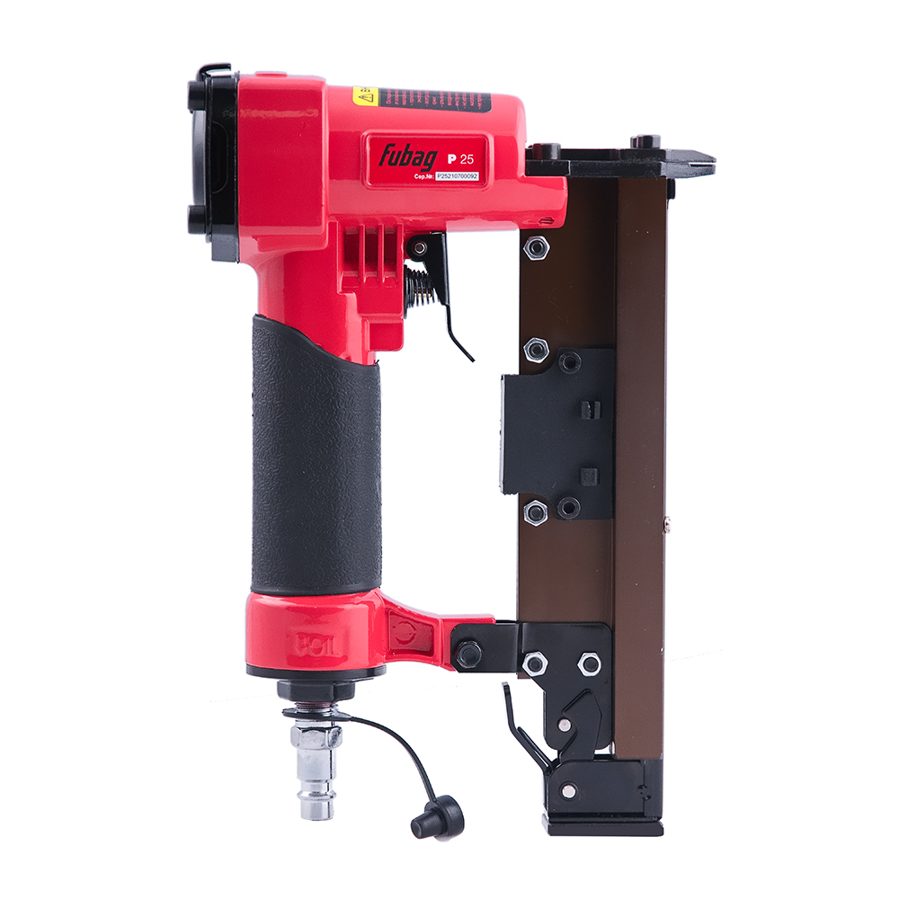 | Информация | Шпилькозабивной пневматический степлер Fubag P25 необходим в отделочных работах (крепление наличников, штапиков рам, элементов декора и т.п.). Для работы используются шпильки без шляпки малого диаметра, длиной 10-25 мм, что делает крепление надёжным и практически незаметным. |