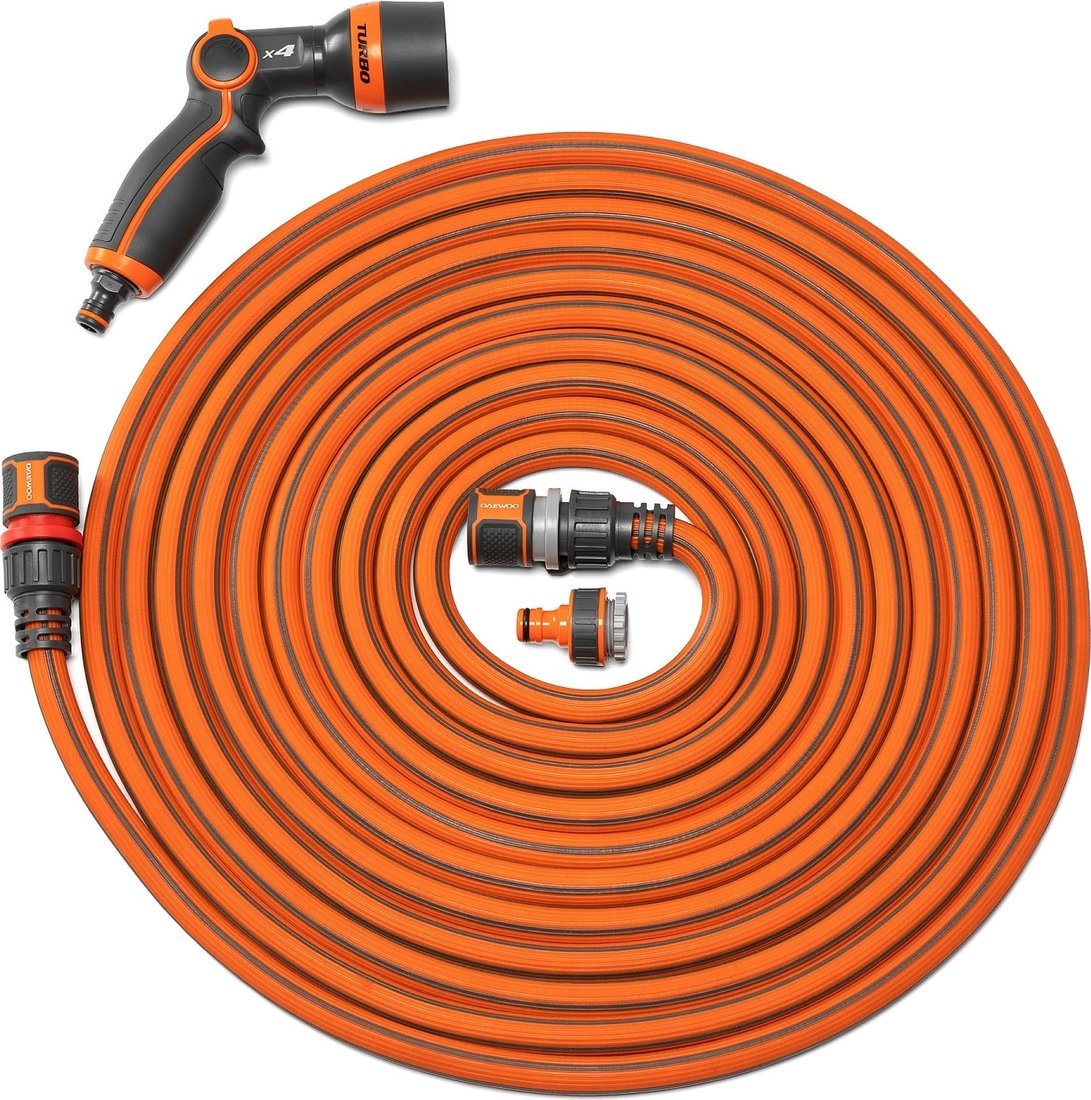 | Информация | - Увеличение длины до 3 раз Благодаря гофрированному внутреннему слою из гибридного полимера под воздействием давления воды шланг увеличивает длину до 3х раз. - Прочный верхний слой Тактильно приятный внешний слой из искусственного каучука защищает шланг от воздействия окружающей среды и позволяет ему легко скользить по любой поверхности. - Безопасный Материалы, из которых изготовлен шланг, не содержат токсичных фталатов и тяжелых металлов. - Полный комплект В комплекте поставки всё, что нужно для моментального подключения к водоснабжению. Шланг имеет быстросъёмные коннекторы, один из которых имеет запорный клапан Aquastop и 4-режимный пистолет DWG 1020 для решения любых задач в саду, а также адаптер для крана DWC 1019. |