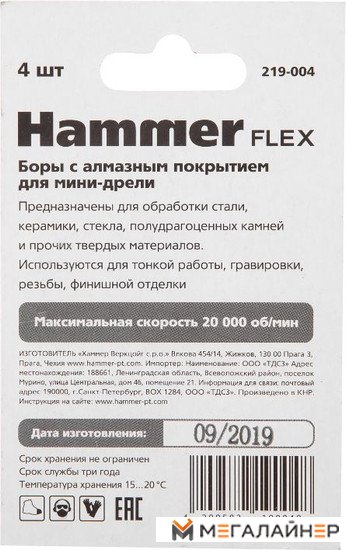 | Информация | Набор борфрез Hammer Flex 623073 включает в себя алмазные боры различных форм: большой шар, маленький шар, цилиндр и конус. Подходит для гравировки по стеклу и керамике. Хвостовик диаметром 3,2 мм совместим с большинством современных моделей мини-дрелей. |