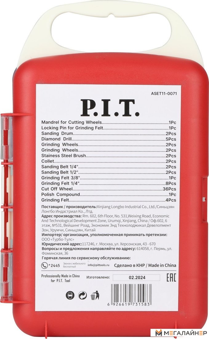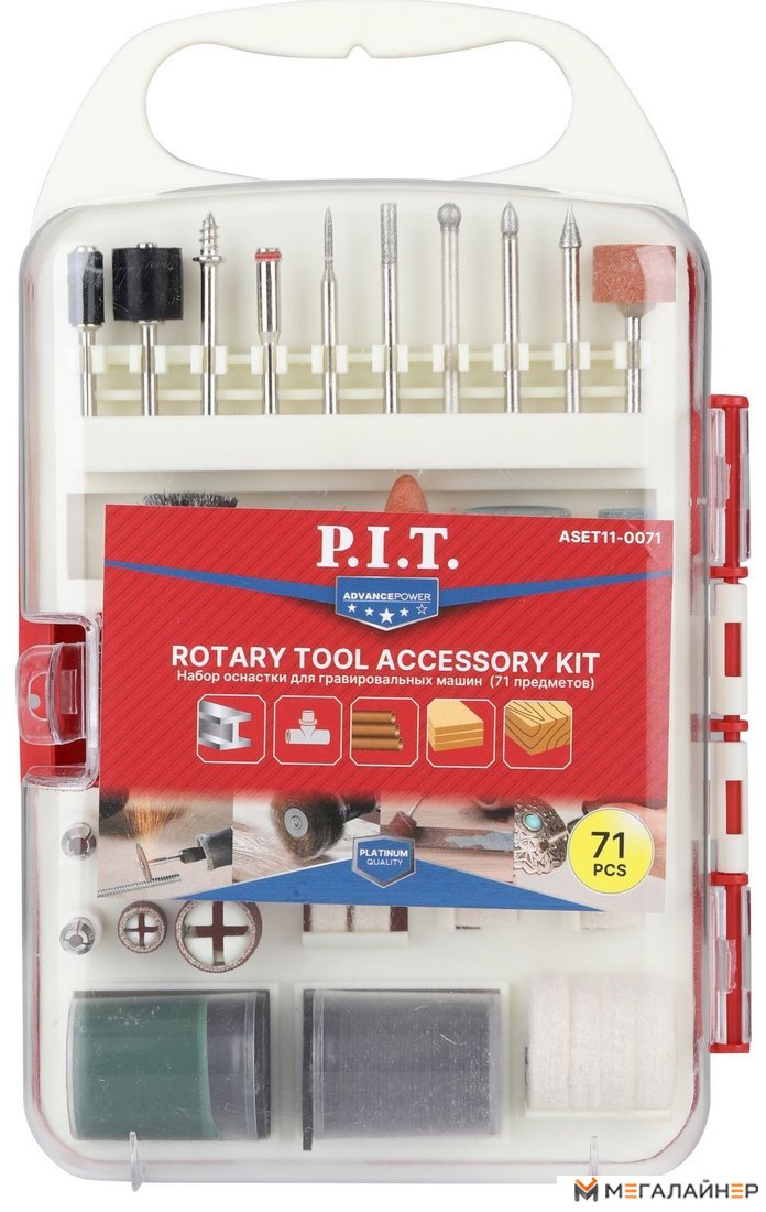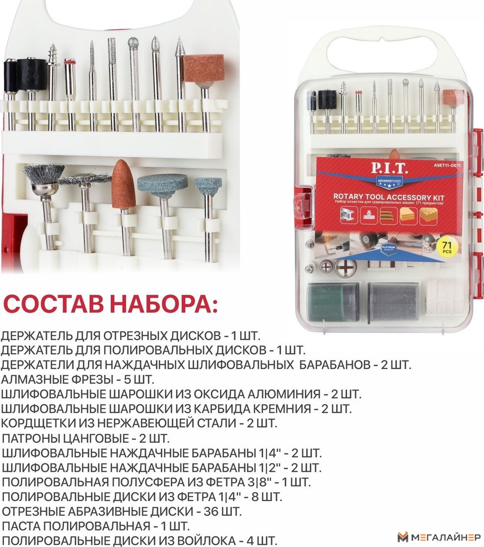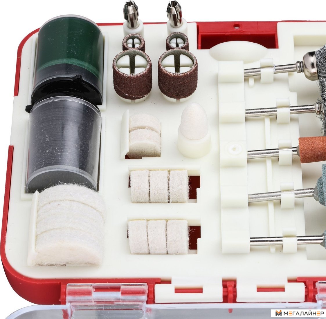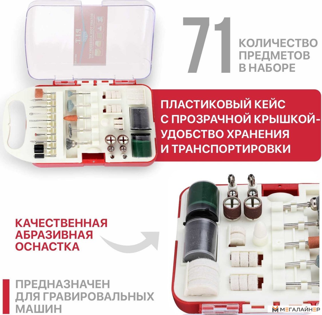 | Комплектация | Набор принадлежностей для гравировальных машин 71 предмет, пластиковый кейс |