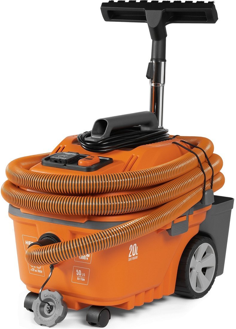 | Информация | Высокопроизводительный двигатель DAEWOO. Электрический двигатель DAEWOO мощностью 1500 Вт в сочетании с высокопроизводительной турбиной обеспечивают разряжение 250 мбар и высокую производительность уборки. Класс фильтрации М. Система фильтрации с HEPA фильтром обеспечивает удержание до 99,9% частиц пыли. Бак из ударопрочного пластика. Компактный корпус пылесоса выполнен из современного, ударопрочного пластика с толщиной стенки 3 мм. Стойкий к механическим воздействиям и коррозии. Объем бака 20 литров. Розетка для электроинструмента. Встроенная розетка позволяет подключать к нему электроинструменты мощностью до 2000 Вт. Автоматическое включение пылесоса при начале использования инструмента и отключение с задержкой для удаления грязи из шланга. 4 в 1. Пылесос сочетает в себе 4 функции, расширяя сферы применения: Сухая уборка и сбор сухого мусора Влажная уборка и сбор воды Выдувание Хранение аксессуаров Корзина для аксессуаров. Корзина, расположенная на корпусе пылесоса, позволяет разместить в себе все необходимое для уборки. Шланг увеличенной длины 4 м. Шланг длиной 4 м позволяет собирать строительный мусор на высоте, без необходимости поднимать пылесос. Антистатическое покрытие позволяет собирать мелкую пыль, не накапливая статический заряд. Система хранения шланга. Специальные крепления на корпусе пылесоса позволяют удобно смотать шланг для компактного хранения. Расширенная комплектация. В комплектацию пылесоса входит: Щетка для сухой и влажной уборки Щелевая насадка Изогнутая насадка Адаптер для подключения электроинструмента 3 тканевых мешка для сухой уборки Телескопическая штанга. Металлическая штанга увеличивается в длине от 49 см до 84 см позволяет подобрать комфортную высоту для работы. Увеличенные задние колеса. Прорезиненные колеса увеличенного диаметра обеспечивают легкое передвижение пылесоса по любому покрытию. Компактные размеры. Благодаря компактным размерам пылесос не занимает много места при хранении. Низкая высота и центр тяжести делают его стойким к опрокидыванию. |
