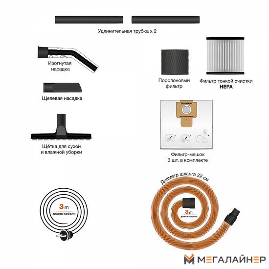 | Информация | База с увеличенными колесами и отделом для хранения аксессуаров. Бак из ударопрочного пластика объемом 20 л. Функция обратного выдувания 3000 л/мин. Шланг увеличенной длины 3 м для сбора мусора на высоте. Возможность сбора воды до 20 литров. ?? Автоматическая остановка всасывания для предотвращения попадания жидкости в двигатель. |