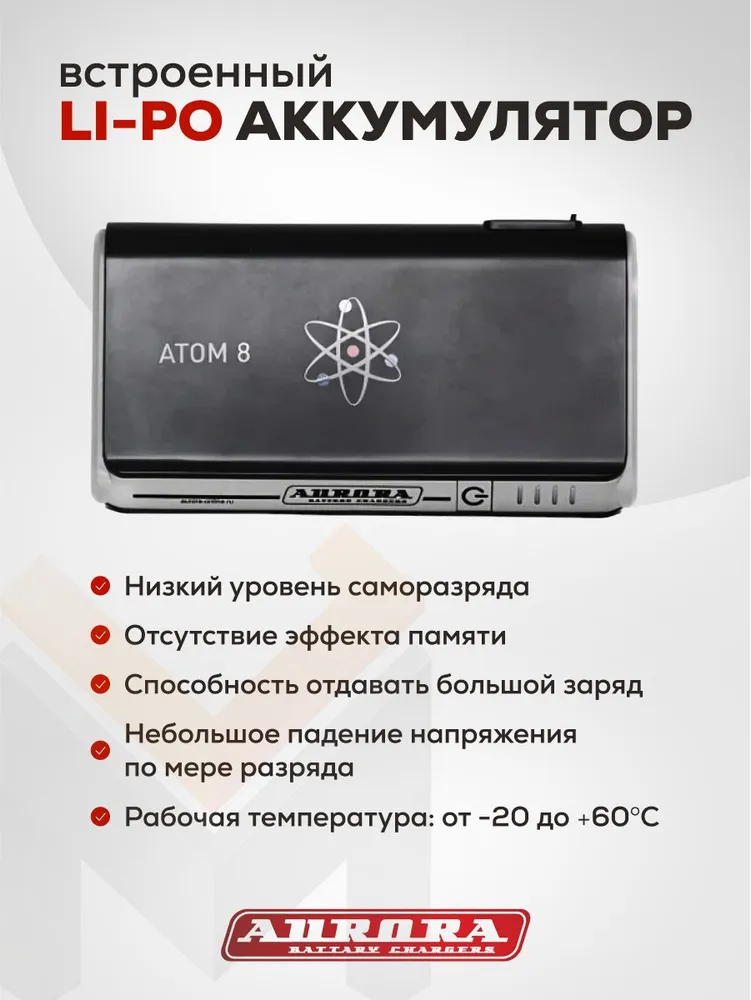 Пусковое устройство нового поколения AURORA ATOM 8 – это очень компактное пусковое устройство. Благодаря минимальным размерам и весу оно является очень мобильным, - вы всегда сможете взять его с собой, так как аппарат буквально помещается в кармане.