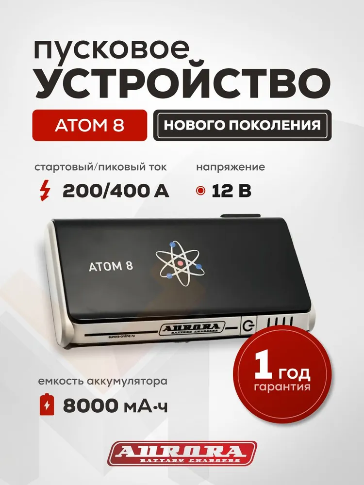 AURORA ATOM 8 подойдет для запуска легковых автомобилей, мотоциклов, генераторов и других приборов, которые используют 12В аккумуляторы. Прибор можно использовать для зарядки или питания различных мобильных гаджетов и портативных устройств: телефонов, ноутбуков, планшетов, компрессоров, автохолодильников и многого другого. Поэтому это отличный вариант для тех, кто собирается на рыбалку, в поход или в командировку.