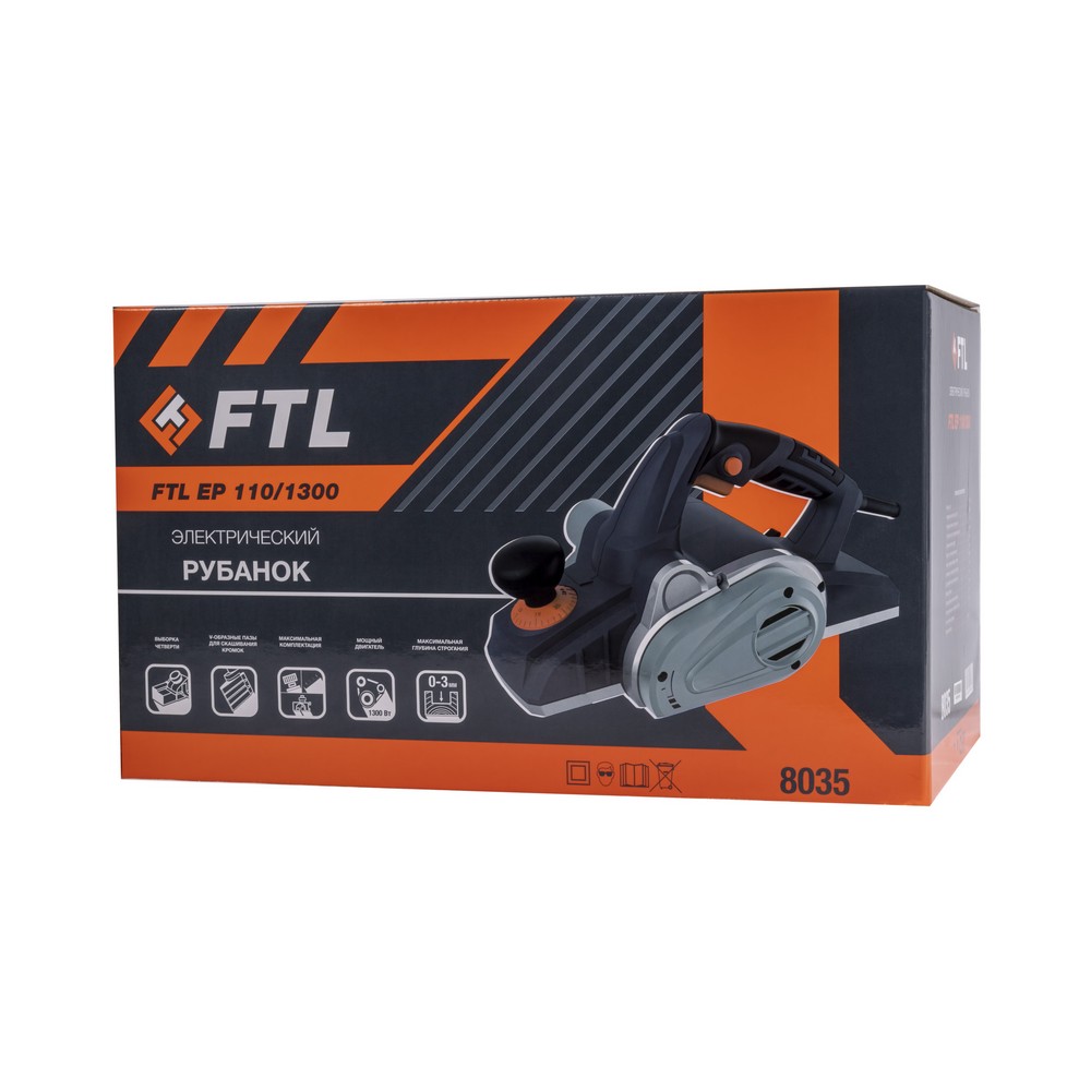 Электрорубанок сетевой FTL EP 110/1300 - профессиональный деревообрабатывающий инструмент для строгания с помощью ножей на встроенном барабане. Модель оснащается мощным электродвигателем в 1300 Вт обеспечивающим вращение барабана со скоростью в 15 800 об/мин. Барабан оснащается двумя односторонними ножами шириной 110 мм. Высокое качество строгания гарантируется за счет опорной плиты из алюминия, которая обеспечивает плавное и ровное строгание, а также регулировкой глубины строгания 0 - 3 мм и тремя V-образными пазами для скашивания кромок. Функция выборки четверти с максимальной глубиной в 14 мм расширяет спектр выполнения задач инструмента. Модель имеет интегрированный патрубок для выдува стружки. Наличие функции защиты от случайного включения и прорезиненной рукоятки, обеспечивающей надежное удержание инструмента и низкий уровень вибраций, гарантирует безопасность и надежность выполняемой работы.