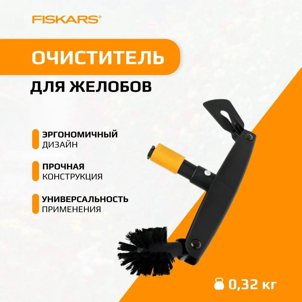 Закругленная щетка чистит водосточный желоб и мелкий мусор