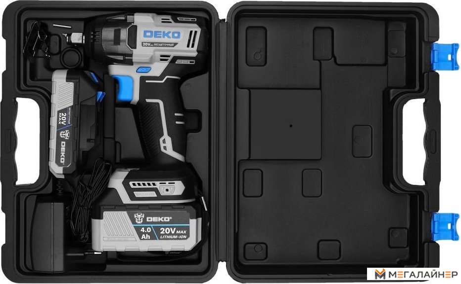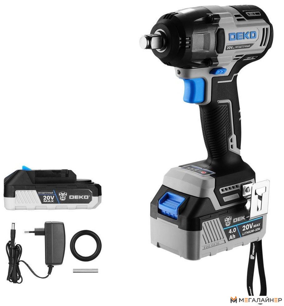 - Гайковерт - 1 шт.; - Аккумулятор 4,0 Ач - 1 шт.; - Аккумулятор 2,0 Ач - 1 шт.; - Зарядное устройство - 1 шт.; - Скоба поясная - 1 шт.; - Винт - 1шт.; - Уплотнительное кольцо - 1 шт.; - Штифт - 1 шт.; - Руководство по эксп