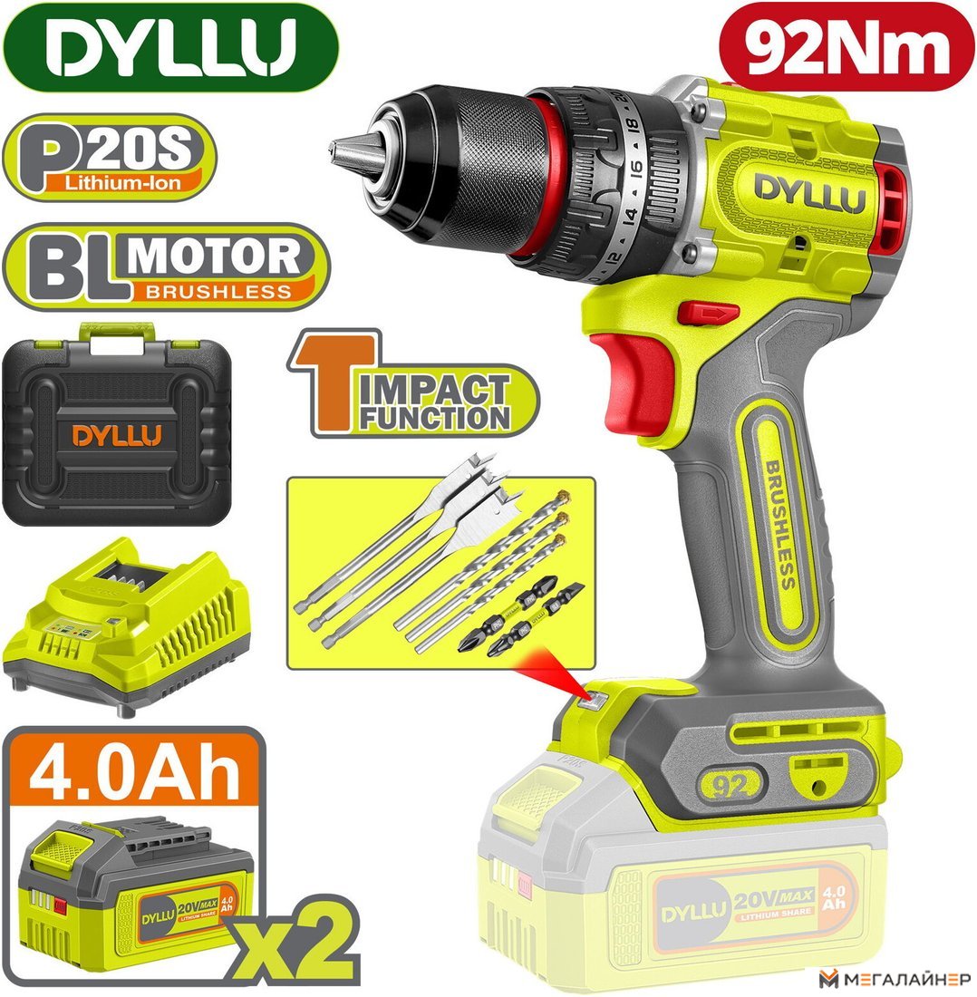 - Дрель-шуруповерт ударная - 1 шт.; - Аккумулятор 4,0 Ач DTLBP540 - 2 шт.; - Зарядное устройство DTFCP502 - 1 шт.; - Сверла по дереву 16, 19, 22 мм – 3 шт.; - Сверла по бетону 5, 6, 8 мм – 3 шт.; - Биты для ударного шуруповерта
