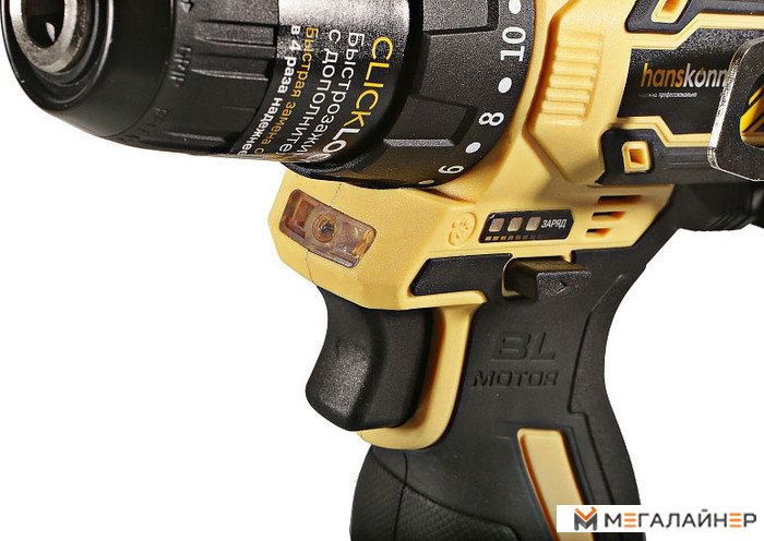 | Информация | Аккумуляторная дрель-шуруповерт Hanskonner HCD1645BLC с бесщеточным двигателем — одна из самых мощных и компактных в своем классе. Одномуфтовый быстрозажимной пластиковый патрон ClickLock позволяет менять оснастку одной рукой. 20 ступеней регулировки усилия затяжки позволяют работать с самыми мягкими и деликатными материалами. Фирменные подшипники C&U увеличивают ресурс работы инструмента на 50%. Для комфортной работы, а также для работы в слабоосвещенных местах, на шуруповерте сделана яркая светодиодная подсветка. Индикатор заряда аккумулятора позволит постоянно контролировать уровень заряда и не начинать работу с разряженным аккумулятором. Специальная скоба с возможностью установки как справа, так и слева позволит повесить шуруповерт на поясе, чтобы он постоянно находился «под рукой». Шуруповерт Hanskonner HCD1645BLC поставляется с двумя сменными аккумуляторами 2.0 Ач и зарядным устройством в сумке-кейсе. |