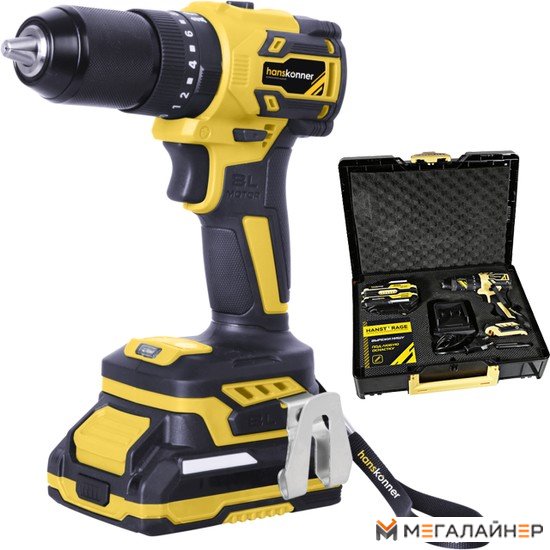 | Комплектация | - Аккумуляторная ударная дрель-шуруповерт (1 шт) - Аккумуляторная батарея (2 шт) - Зарядное устройство (1 шт) - Двусторонняя бита (1 шт) - Скоба (1 шт) - Фиксирующий винт (1 шт) - USB LED-фонарик (1 шт) - Пластиковый кейс (1 шт) |