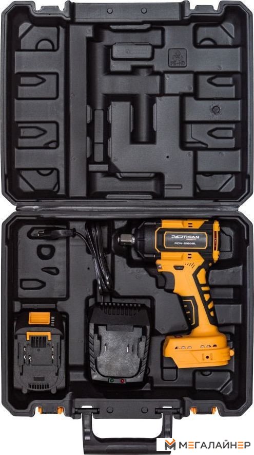 • гайковерт; • аккумулятор; • зарядное устройство; • ударная головка; • кейс; • руководство по эксплуатации; • гарантийный талон