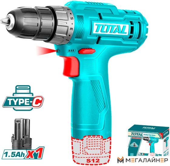 Аккумуляторная дрель-шуруповерт - 1 шт.; Аккумуляторная батарея TBLI12153 Li-Ion 1,5 Ач - 1 шт.; Инструкция; Коробка